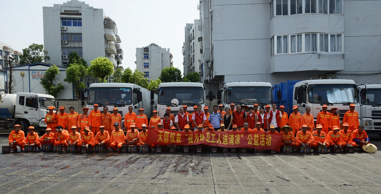 對環(huán)衛(wèi)工人的關(guān)愛,體現(xiàn)了一個城市的文明程度,這不是表現(xiàn)在口頭上,而是體現(xiàn)在具體的行動中。為了號召廣大市民講文明、樹新風(fēng),共同參與城市環(huán)境衛(wèi)生建設(shè),同時緩解、分擔(dān)環(huán)衛(wèi)工人的工作壓力,天信儀表集團(tuán)有限公司黨工團(tuán)婦于今年夏季再一次發(fā)起;我為環(huán)衛(wèi)工人送清涼;的微公益活動。