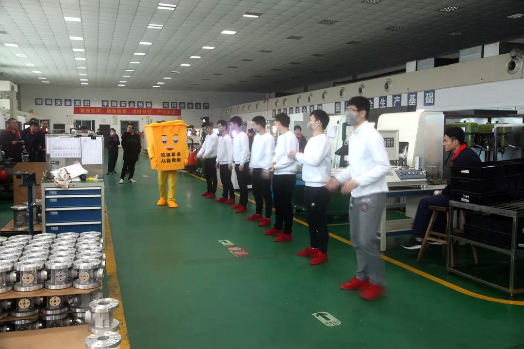 2018年1月11日,一場別開生面的環(huán)??扉W秀活動在天信廠區(qū)上演。正當員工們在自己的崗位上有條不紊工作時,金工車間空地上突然響起了時尚動感的曳步舞音樂,只見八位帶著灰色口罩、穿著統(tǒng)一衣服的天信文藝俱樂部成員從工作崗位上來到空地中間,配合著音樂激情熱舞,炫動全場。中間還有一位萌萌的、扮演垃圾桶的黨員志愿者,向圍觀的員工作垃圾分類的宣傳。