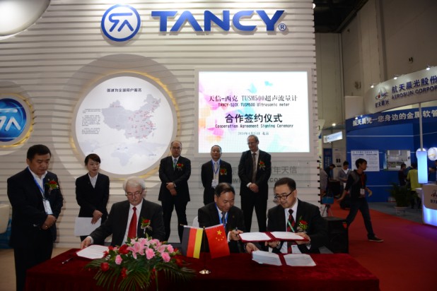 本次北京參展還有一項(xiàng)重要議程,西克天信USM500超聲波流量計(jì)合作協(xié)議簽約儀式于10:00正式開(kāi)始,參加簽約儀式的有來(lái)自北京西克麥哈克公司和德國(guó)西克的領(lǐng)導(dǎo)以及天信公司董事長(zhǎng),總裁,技術(shù)總監(jiān),參展商代表等。營(yíng)銷中心總監(jiān)范曄主持簽約儀式,陳開(kāi)云董事長(zhǎng)致歡迎辭,西克銷售經(jīng)理班吉爾先生代表西克公司發(fā)表致辭。本儀式簡(jiǎn)約而隆重,許多載入天信展會(huì)上的許多參展商也應(yīng)聲來(lái)到天信展臺(tái),為之喝彩。本次合作,有利于發(fā)揮各自優(yōu)勢(shì),深化互利合作,共同推進(jìn)超聲波流量計(jì)產(chǎn)品及技術(shù)領(lǐng)域的長(zhǎng)足發(fā)展。